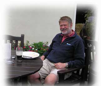 På kvällen blev det ale och glass i trädgården på the Tame Otter.