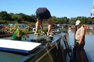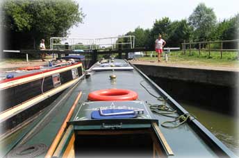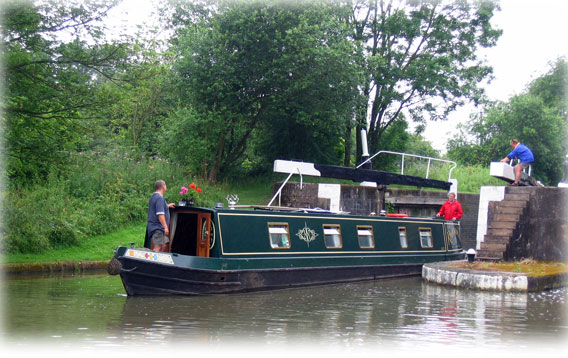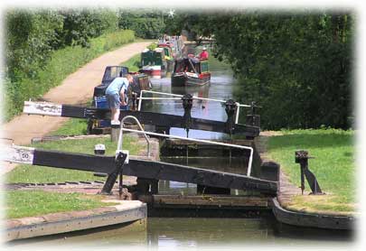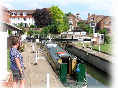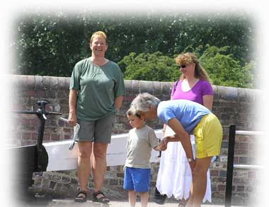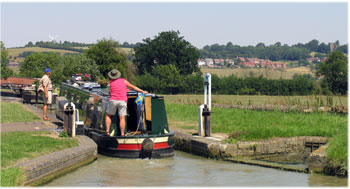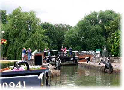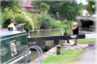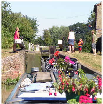 På helgerna är slussarna ganska hårt utnyttjade, men lyckligtvis var de bemannade av frivilliga medlemmar från L.A.N.T (Lower Avon Navigation Trust).