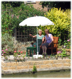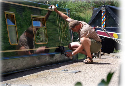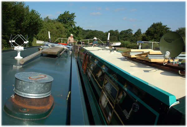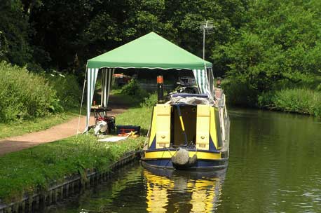 Värmebölja i England, soltak behövs när man skall jobba på båten.