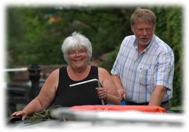 Dagens första 10 slussar hade vi sällskap med Harmonie och plötsligt hamnade Hanne på fel båt, men Hanne verkade inte som om hon hade tråkigt ihop med John som den engelske gentleman hette.