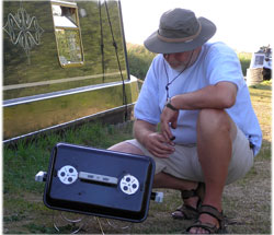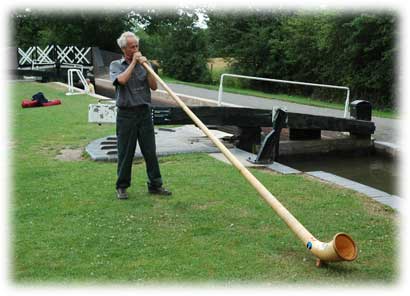 Denna man mötte vi i slussen spelande på sitt "alphorn", han berättade att ekot var fint i de tomma slussarna
