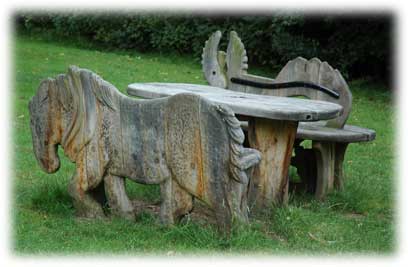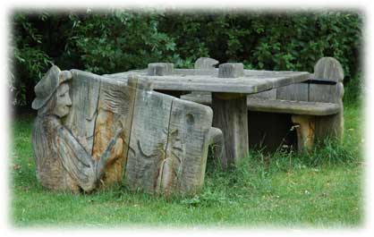 Dessa bänkar var uppställda vid kanalsidan på Lapworth Link. Här blev det lunch i det gröna