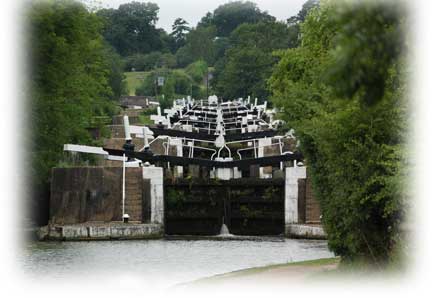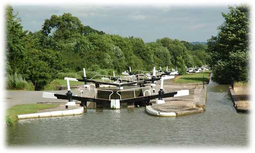 Hatton Locks är imponerande slusstrappa med 21 breda slussar, höjdskillnaden är 146 fot.