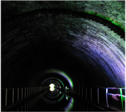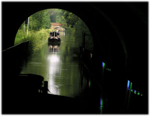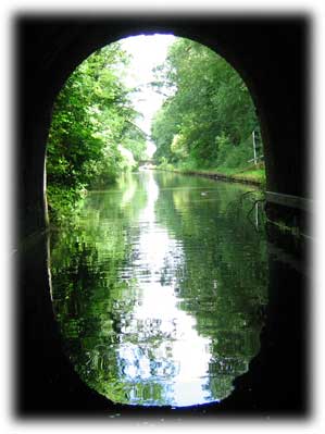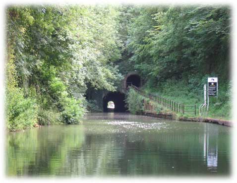 Shrewley Tunnel 443 yards. Det speciella med denna tunnel är att towpathen går i ett eget rör.