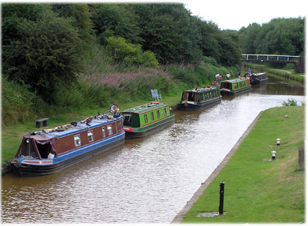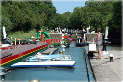 Harecastle tunnel är enkeltriktad och endast öppen för insegling varannan timme från varja ända. Så här är det alltid båtar som väntar på att bli insläppta.