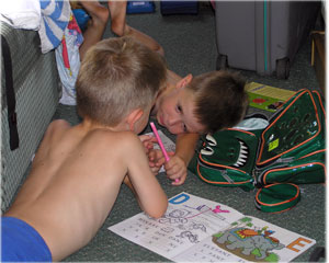 Full rulle redan från första dagen, slussar man inte så är det teckning och målning ombord som gäller