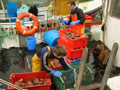 Fiskarna kom in och landade dagens fångst av krabbor. |